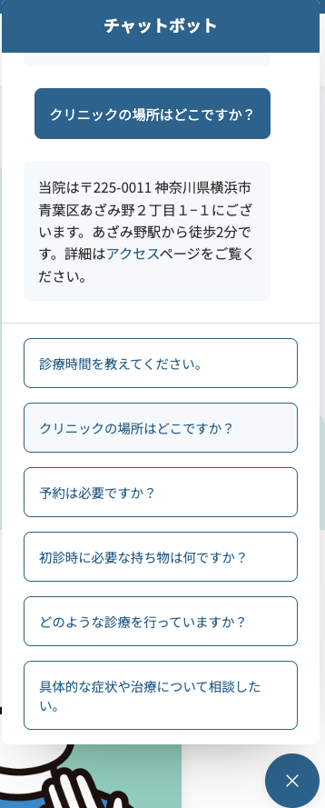 本サイトではJavaScriptによるチャットボットを導入しています。