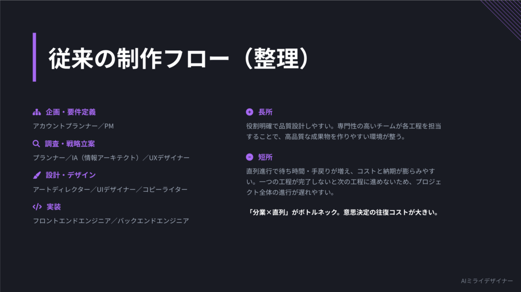 AIミライデザイナーは、生成AI活用とWeb制作の専門性を融合したハイブリッド型サービスブランドです。