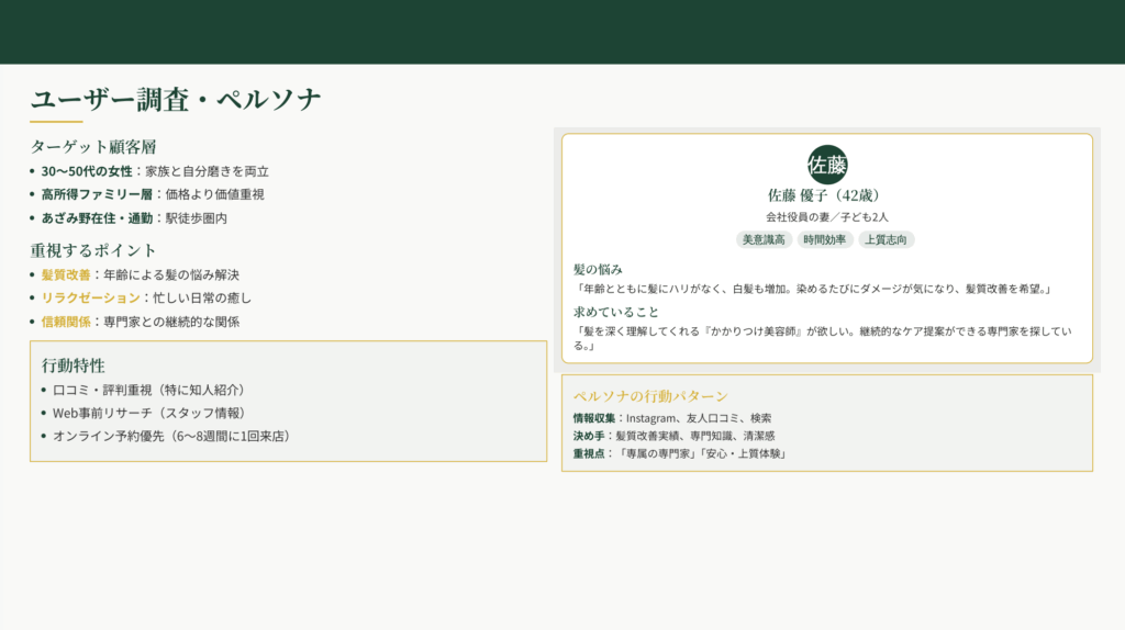 ペルソナの設定も得意としており、事前調査したデータを元に、具体的なペルソナ像を浮かび上がらせます。