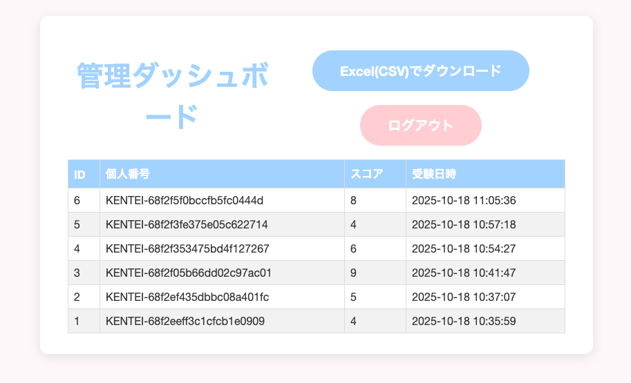 こういった検定システムの汎用的なベースシステムを開発しましたので、通常の開発よりお安く提供することが出来ます。