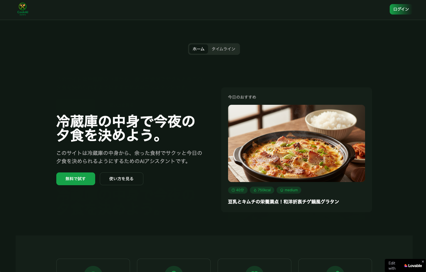 • AIで食材を分析し、レシピ生成ができ、しかも完成写真のクオリティが高いところ